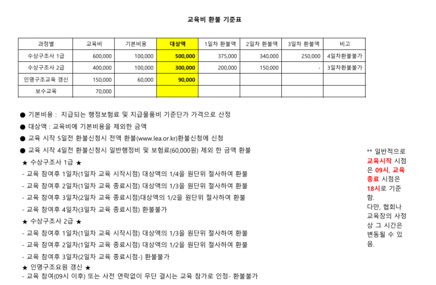 공지 2026년 교육비 환불기준표 페이지 정보 작성자 총무부 댓글 0건 조회 542회 작성일 26-01-27 16:55 본문 2026년 교육비 환불기준표 목록 이전글2026년『해양레포츠 자격증 취득 교육비 지원사업』 공고 26.02.20 다음글2026년 교육비인상 안내 26.01.27