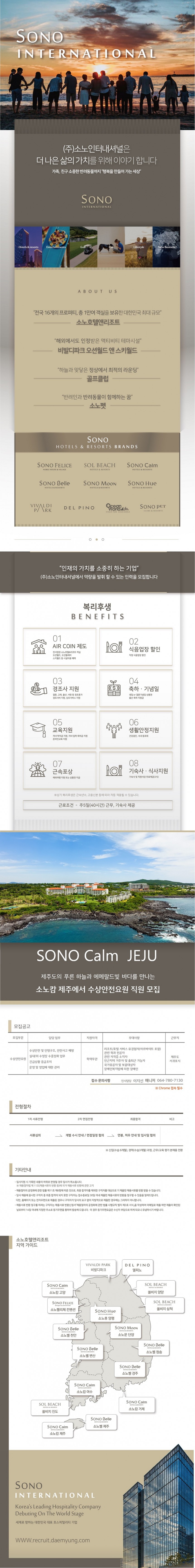 - ㈜소노인터내셔널 서귀포지점 채용담당자 : 064-780-7130 / jiseonlee@daemyungsono.com 이력서 또는 지원서 발송